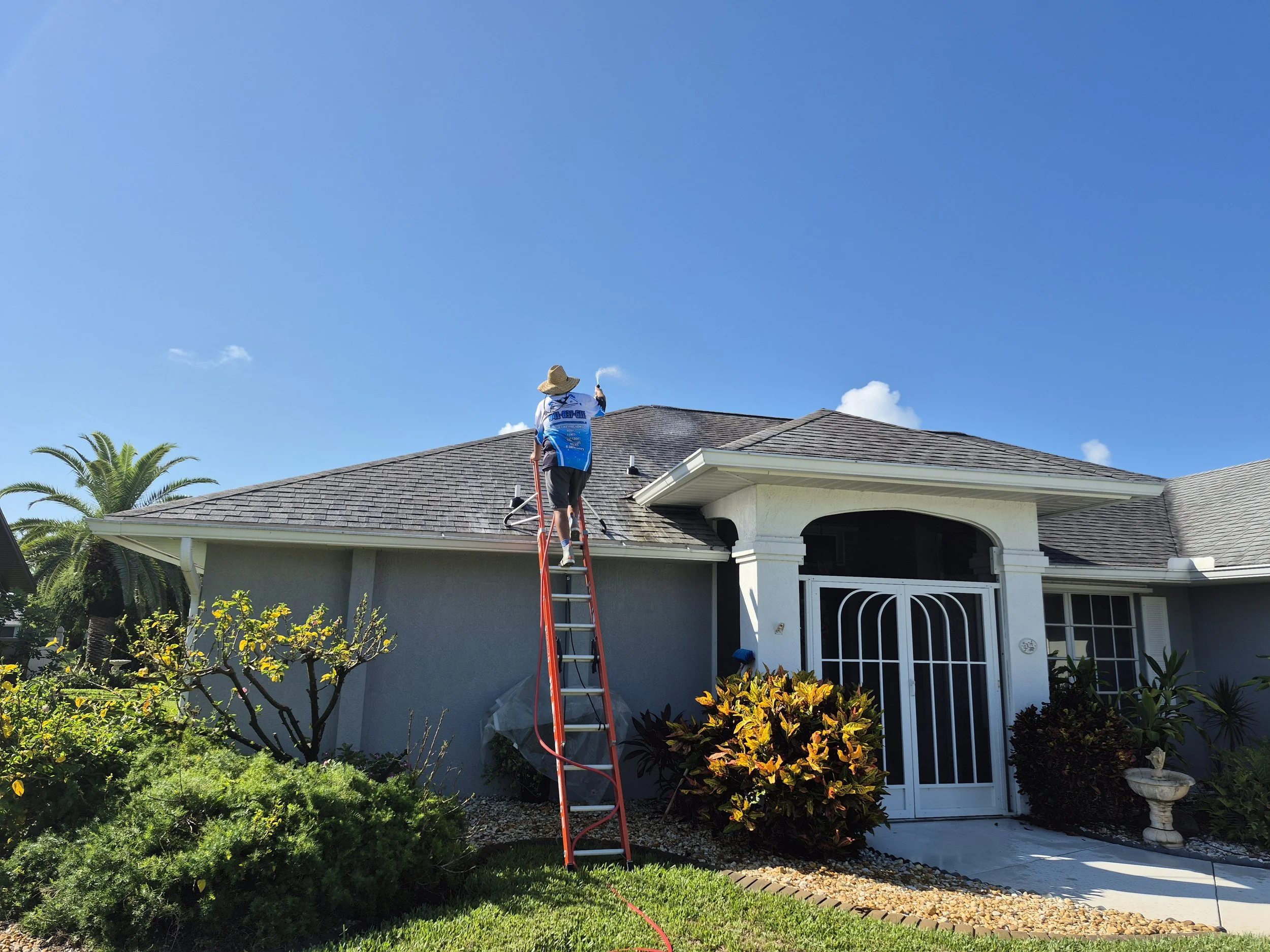 We use low-pressure water combined with biodegradable cleaning solutions to safely remove algae, mold, and other biological growth from roofs without causing damage to shingles or other roofing materials.